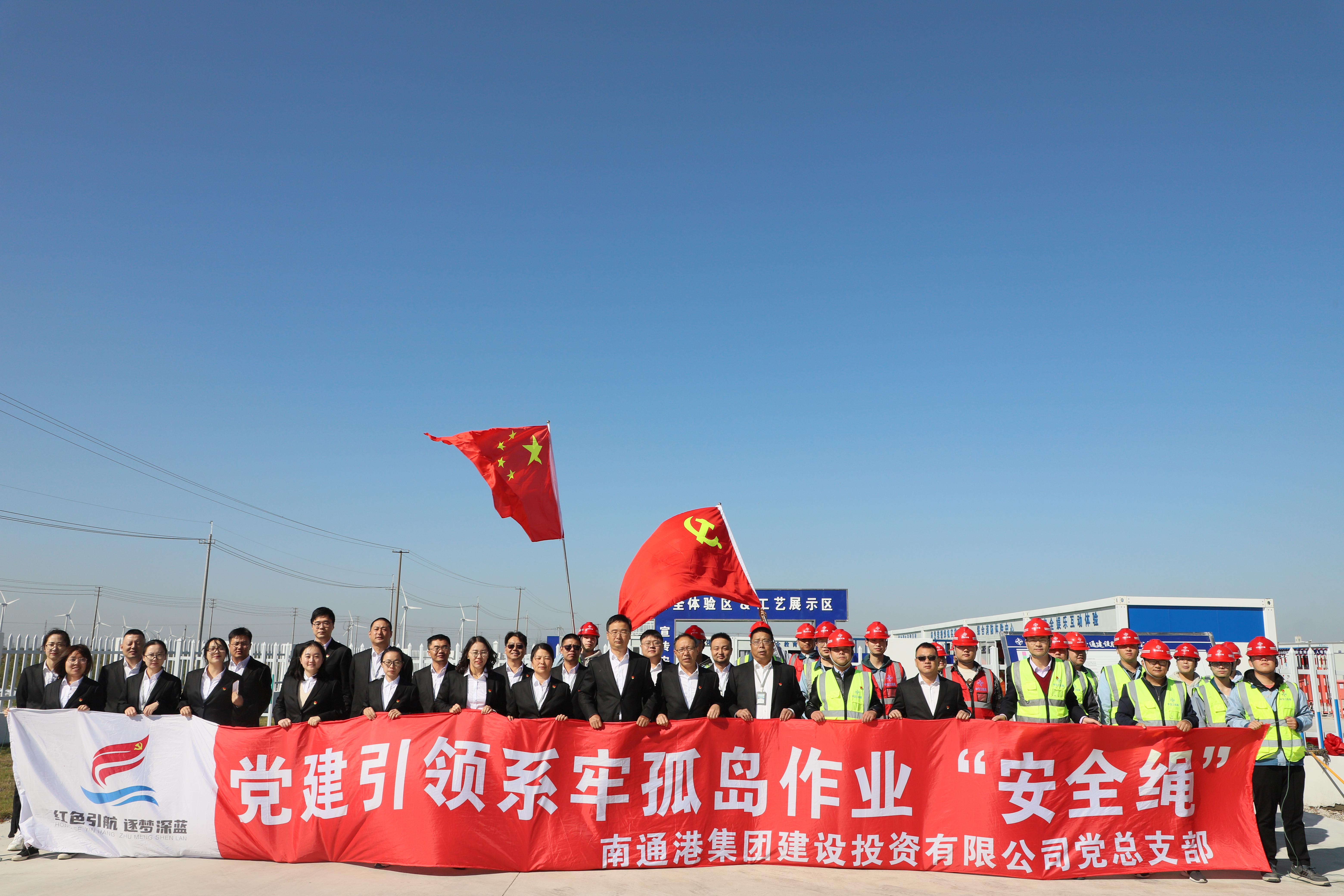為深入學習習近平總書記關于安全生產重要論述及指示精神,發揮黨建引領作用,以黨的政治優勢推動安全責任體系落實,進一步普及安全知識,提升參建人員安全素質,10月10日上午,建投公司黨總支與中交三航局黨支部聯合開展“黨建引領系牢孤島作業‘安全繩’”主題黨日活動暨通州灣三港池“2+1”碼頭工程安全體驗館開館儀式。集團黨委委員、建投公司黨總支書記、董事長姜金勇出席活動。建投公司、中交三航局南通港通州灣港區三港池1#-3#碼頭工程項目部全體黨員參加活動。